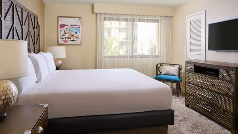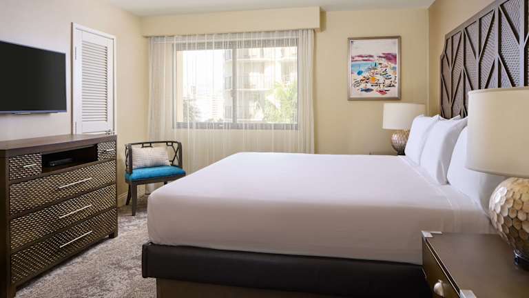 In den Suiten gibt es eine Küche und ein Badezimmer. Für angenehmes Raumklima sorgt eine individuell steuerbare Klimaanlage. Die Gäste können den Meerblick von einem Balkon oder einer Terrasse geniessen. Die Zimmer sind mit Teppichböden, einem Kingsizebett und einem Sofabett ausgestattet. Zustellbetten können angefordert werden. Zusätzlich sind ein Safe, eine Minibar und ein Schreibtisch vorhanden. Zur Ausstattung gehört eine umfassend ausgestattete Kochnische mit Kühlschrank, Mikrowelle, Tee-/Kaffeemaschine und Geschirrspüler. Weiterhin gibt es eine Waschmaschine, ein Bügelset und einen Wäschetrockner. Das Badezimmer verfügt über eine Dusche und eine Badewanne, sowie Kosmetikartikel und Handtücher. Es gibt Familien- und Nichtraucherzimmer.