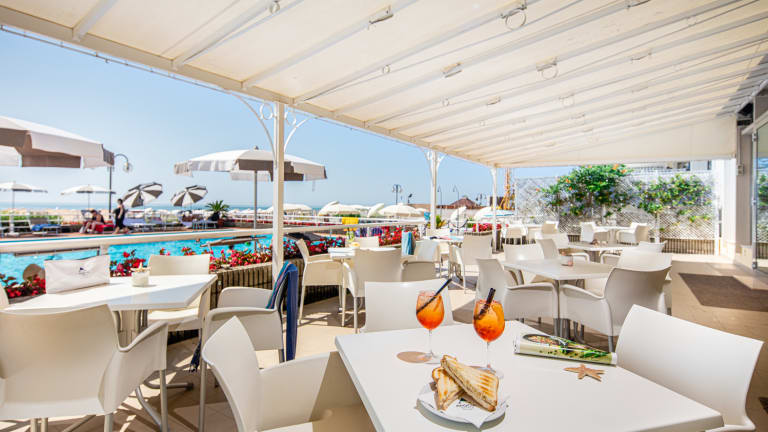 Das Frühstück verschönert den Gästen den Tag noch bevor der Urlaub in Jesolo richtig beginnt. Jeden Tag von Mai bis September hält das Frühstück viele leckere Überraschungen für unsere Gäste bereit, die in der kühlen Morgenluft auf der Terrasse den wundervollen Blick auf das Meer genießen können. Das Frühstücksbüffet bietet eine große Auswahl an frischen und duftenden Zutaten für ein leckeres Frühstück. Sie werden von der mediterranen und internationalen Küche, dem Wein, dem Service und der Atmosphäre begeistert sein. Der höfliche und aufmerksame Service garantiert dafür, dass unsere Gäste sich rundum wohlfühlen. Die hervorragenden Gerichte und Weine werden in wundervoller Atmosphäre serviert. Wir kümmern uns um die Essenswünsche aller Gäste, auch der kleinsten.