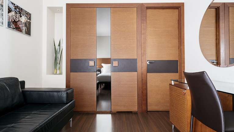 Die Zimmer sind klimatisiert und bieten ein Doppelbett oder Kingsize-Bett. Zu den Annehmlichkeiten zählen ein Safe, eine Minibar, ein Schreibtisch, ein Telefon mit Direktwahl und Sat-TV. Die modernen Bäder sind mit Dusche und Badewanne ausgestattet und verfügen über einen Haartrockner sowie Kosmetikartikel. WLAN ist kostenfrei verfügbar. Es gibt auch rollstuhlgerechte Zimmer mit barrierefreiem Bad.