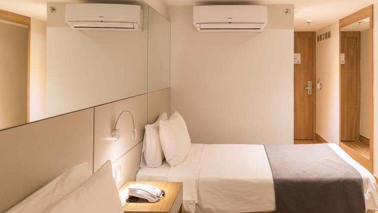 Die 150 klimatisierten Zimmer im Hotel Atlântico Travel sind komfortabel eingerichtet und verfügen über Annehmlichkeiten wie eine Minibar und einen Flachbildfernseher. Kostenloses WLAN steht zur Verfügung und die Badezimmer sind mit Duschen, kostenlosen Toilettenartikeln und Haartrocknern ausgestattet. Telefon, Safe und Schreibtisch sind ebenfalls vorhanden.