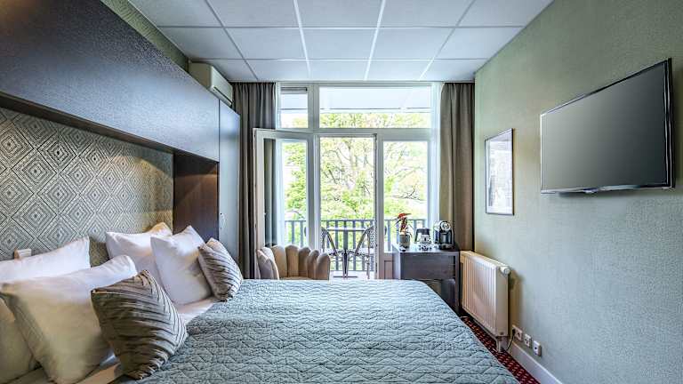 Die Zimmer sind mit einem Balkon ausgestattet und bieten zahlreiche Annehmlichkeiten wie einen Safe, einen Schreibtisch, eine Tee- und Kaffeemaschine, ein TV-Gerät und kostenfreies WLAN. Im Badezimmer befinden sich entweder eine Dusche oder eine Badewanne sowie ein Haartrockner. Das Hotel verfügt über Nichtraucherzimmer und Familienzimmer.