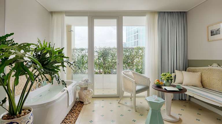 Die klimatisierten Zimmer sind in Pastellfarben gehalten und verfügen über Doppel-, Queensize- oder Kingsize-Betten. Zustellbetten können auf Anfrage bereitgestellt werden. Zur Ausstattung gehören ein Safe, eine Minibar, ein Schreibtisch, ein Kühlschrank und eine Tee- bzw. Kaffeemaschine. Ein Flachbildschirmfernseher, kostenfreies Wifi und ein Badezimmer mit Dusche, Haartrockner, Bademänteln und Kosmetikartikeln runden das Angebot ab. Familien- und Nichtraucherzimmer sind ebenfalls verfügbar.