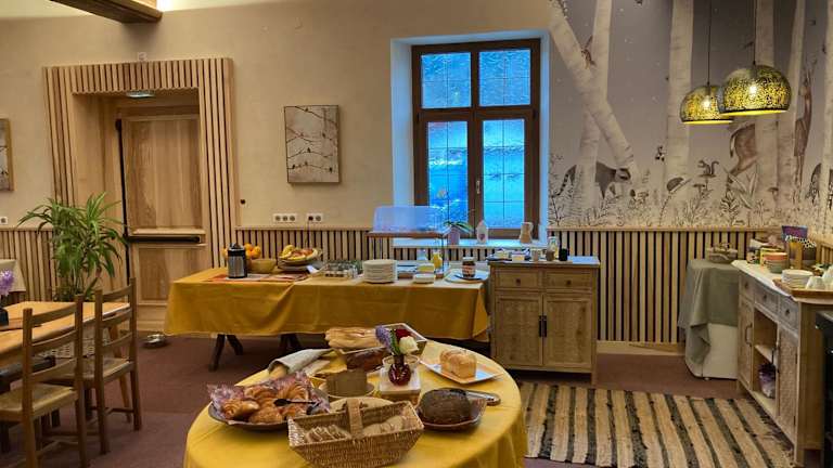 Im Hotelrestaurant werden traditionelle elsässische Spezialitäten serviert, begleitet von einer Auswahl an erlesenen Weinen. Frühstück kann auf der Terrasse genossen werden. Für jüngere Gäste sind spezielle Kindermenüs verfügbar.