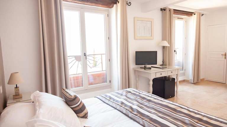 Die Zimmer im Auberge du Vieux Château sind hell und verfügen über ein elegantes französisches Dekor. Jedes Zimmer ist mit einem Flachbild-TV und einer Minibar ausgestattet. Die Zimmer bieten einen Blick auf das Dorf oder die umliegenden Berge. Schallisolierte Zimmer sind ebenfalls vorhanden.