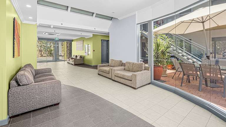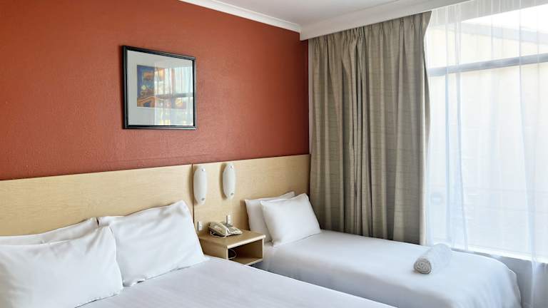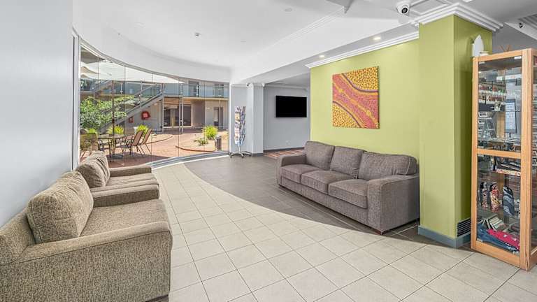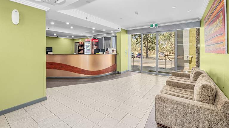 Das Hotel befindet sich im zentral gelegenen Alice Springs, direkt an der Todd Mall. Die Entfernung zum Stadtzentrum beträgt etwa 50 Meter, zum Flughafen ca. 15 Kilometer, zum Golfplatz etwa 3 Kilometer und zum Bahnhof rund 100 Meter.