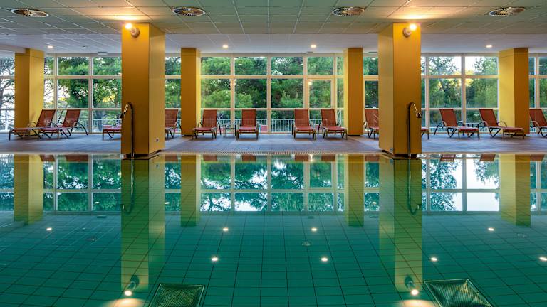 SPORT - 8 Tennisplätze, wovon 2 durchgehend beleuchtet werden - Tennisschule - Mehrzweck-Spielplatz (Mini- Fussball, 2 Korbballplätze, 2 Tennisplätze, 2 Volleyballplätze) - Beach Volleyball Platz - Kegelbahn, Tischtennis, Minigolf, Boccia - Fahrradverleih - Wanderwege - Wassersportmöglichkeiten (Juli bis September) SPA & WELLNESS - 1500 m² großer Wellnessbereich auf 2 Etagen mit einem einzigartigen Blick aufs Meer - Innenpool mit beheiztem Meerwasser - Aussenpool (mit Meerwasser) mit Sonnenschirme und Liegestühle - Kinderhallenbad - Jacuzzi - Sauna (Turkish, Roman, Finnish, Bio-sauna and Laconium) BEAUTY ZONE - Massagen - Gesichts- und Körperbehandlungen - Maniküre und Pediküre - Solarium - Raum mit Wasserbetten - Badewannen mit Massagedüsen - Wellnessprogramme - Fitnessraum - Relaxroom mit Terrasse – mit Blick auf das Meer und den Pinienwald - Outdoor Spa – es gibt di Möglichkeit für Massagen im Freien