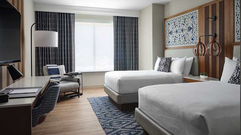 Die Zimmer sind klimatisiert und mit einem Kingsizebett sowie einem Sofabett ausgestattet. Zudem sind ein Safe, eine Minibar, ein Kühlschrank, eine Mikrowelle, eine Tee-/Kaffeemaschine sowie ein Schreibtisch vorhanden. Die Badezimmer sind mit einer Dusche, einem Haartrockner und Bademänteln ausgestattet. Es könnten zudem rollstuhlgerechte Zimmer gebucht werden.