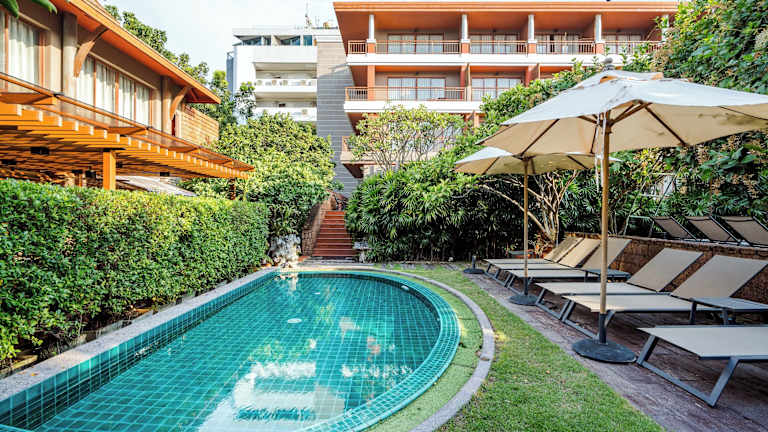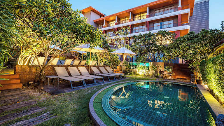 Das Ayrest Hotel präsentiert sich mit einer ansprechenden Architektur im Thai-Stil und bietet schön eingerichtete Zimmer. Es verfügt über einen Aussenpool, einen Gartenbereich sowie eine 24-Stunden-Rezeption. Das Hotel garantiert eine heimelige Atmosphäre und ist ideal für Gäste, die sowohl Entspannung als auch die Erkundung der Umgebung suchen.