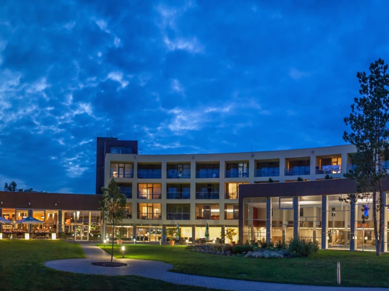 Das Hotel bietet ein Frühstücksbuffet an, sowie ein Restaurant, das internationale und ungarische Küche serviert. Auf Anfrage gibt es auch spezielle Optionen für vegetarische, milchfreie und vegane Ernährung.