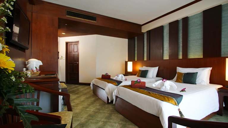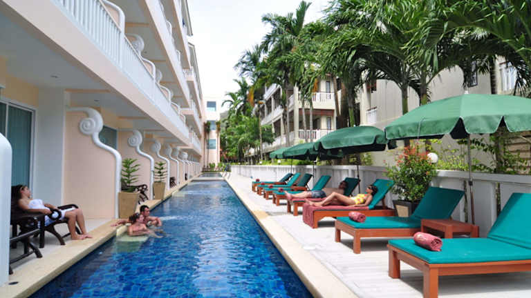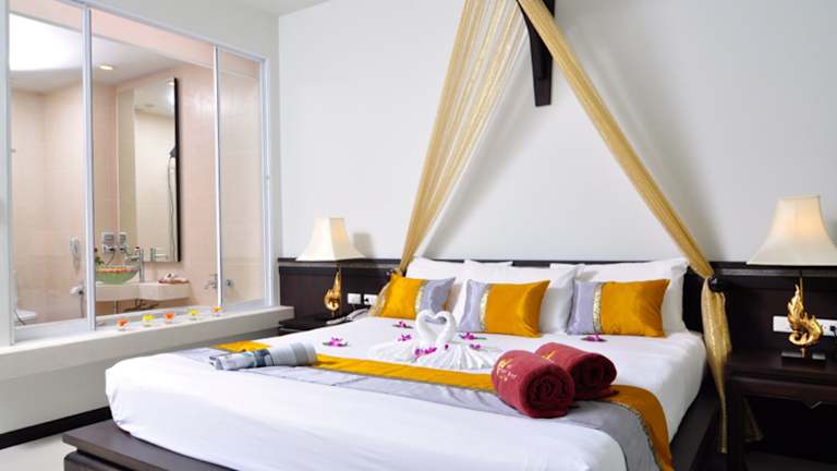 Das Hotel Baan Karon Buri Resort befindet sich in Karon Beach, nur wenige Meter vom feinen Sandstrand entfernt, ideal für Sonnenanbeter und Meerliebhaber. In der nahen Umgebung findet man Restaurants, Bars und Einkaufsmöglichkeiten. Der internationale Flughafen Phuket liegt etwa 45 Autominuten entfernt, während der Patong-Strand in ca. 10 Minuten und die Stadt Phuket in rund 20 Minuten erreichbar ist.