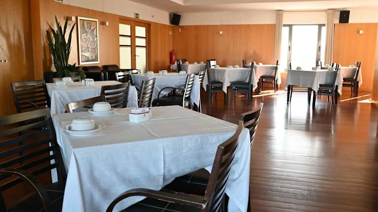 Das Restaurant im Tavernen-Stil bietet eine eindrucksvolle Atmosphäre mit Holzdecke und grossen Kronleuchtern. Hier werden traditionelle portugiesische Gerichte serviert. Gäste können einen Nachmittagstee auf der Terrasse der Bar Pelouro geniessen, mit einem Blick auf die Skyline von Barcelos.
