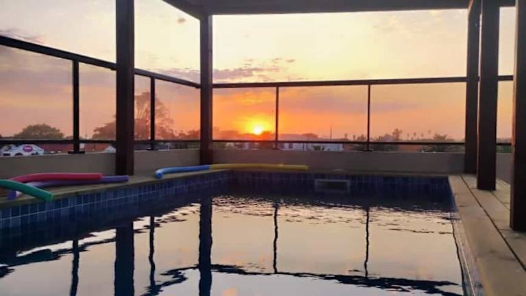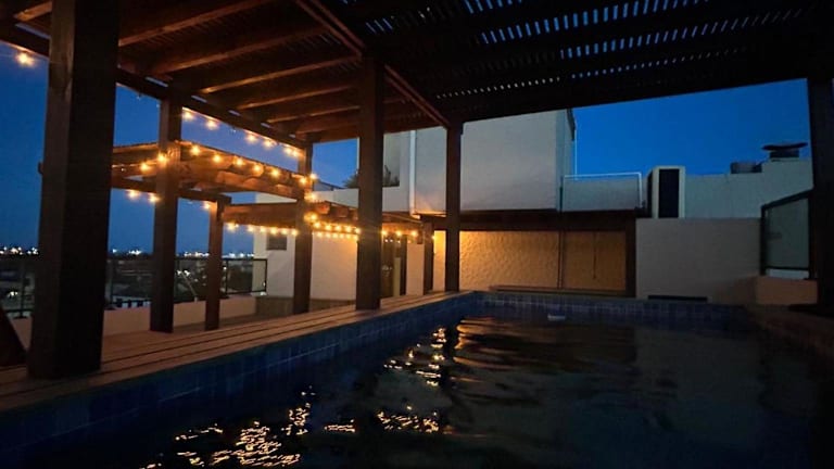 Das Hotel bietet ein umfangreiches Freizeitangebot, einschliesslich eines Wellnessbereichs mit Dampfbad und Fitnessmöglichkeiten. Es gibt einen beheizten Aussenpool, eine Sonnenterrasse und einen Salzwasserpool sowie einen Nichtschwimmerbereich und einen Pool auf dem Dach.