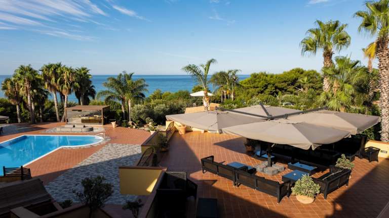 Buchen Sie das Hotel Baia Di Ulisse Wellness & Spa für einen erholsamen und luxuriösen Aufenthalt inmitten eines malerischen Pinienwaldes und nur wenige Schritte vom eigenen Strand entfernt. Genießen Sie die komfortablen Zimmer im mediterranen Stil, das Wellnesscenter mit Sauna, Whirlpool und Türkischem Bad sowie das Hotelrestaurant mit traditioneller sizilianischer Küche.