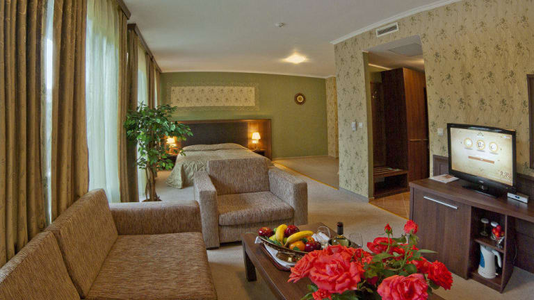 Das Balneo Complex Saint Spas bietet insgesamt 144 Zimmer auf 7 Etagen, die bequem mit dem Aufzug erreichbar sind. Die Zimmer sind geschmackvoll eingerichtet und verfügen über Annehmlichkeiten wie einen Plasma-TV, eine Minibar und ein eigenes Bad mit Duschkabine. Einige Zimmer bieten zudem einen Balkon mit Blick auf die umliegende Natur.