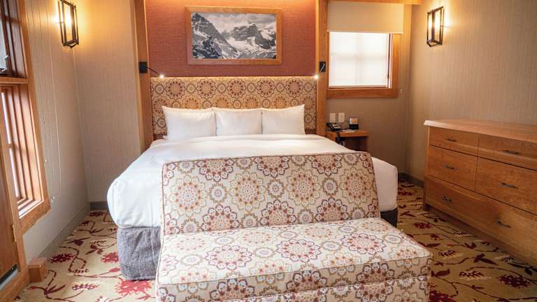 Die Zimmer sind klimatisiert und bieten eine individuell regulierbare Heizung. Alle Zimmer verfügen über einen Balkon oder eine Terrasse mit Bergblick. Ausgestattet sind sie mit einem Doppelbett, einem Queensize- oder Kingsize-Bett sowie einem Safe, einem Schreibtisch, einem Kühlschrank und einer Tee-/Kaffeemaschine. Weiterhin sind ein Telefon, ein TV-Gerät mit Satelliten-/Kabelempfang und kostenfreies Wifi vorhanden. Die Badezimmer sind mit Dusche und Badewanne ausgestattet, und es stehen Kosmetikartikel sowie Handtücher zur Verfügung. Einige Zimmer sind rollstuhlgerecht gestaltet.