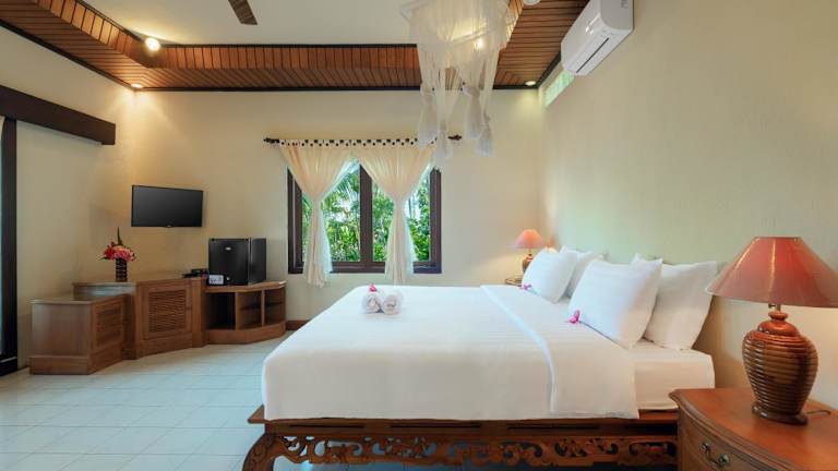 Die Zimmer im Cottage-Stil sind mit Klimaanlage oder Ventilator sowie Sat-TV ausgestattet. Jedes Zimmer verfügt über ein eigenes Bad mit Warm-/Kaltwasserdusche. Familienzimmer sind ebenfalls verfügbar.