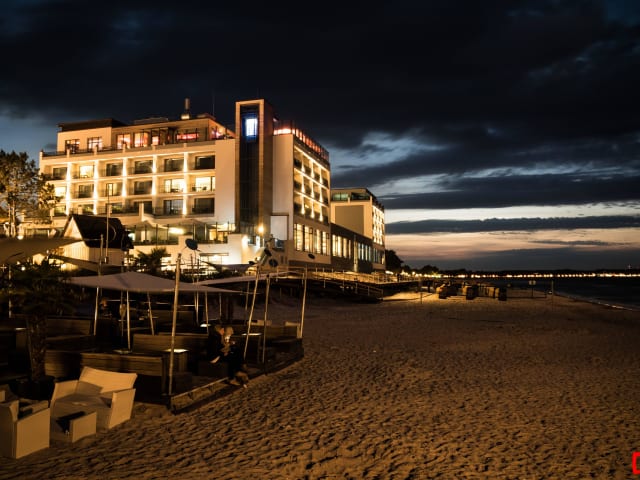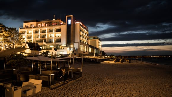 Design-, Strand- und Wellnesshotel in unmittelbarer Strandlage. 133 Zimmer & Suiten, 3 Restaurants, 2 Bars, 2 große Dachterrassen, Kinderspielzimmer, große Lobby, SPA mit Indoorpool, Sauna, Sanarium, Salzsauna, Dampfbad, Wärmeliegen, Wärmebänke, Ruheraum, Fittness, Ladengeschäfte, Tiefgarage