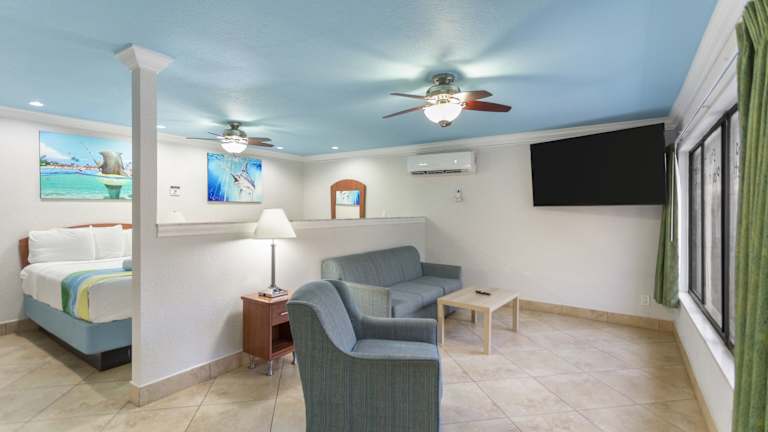Alle Zimmer sind mit Klimaanlage, einem Sitzbereich, einem Flachbild-TV mit Kabelkanälen, einer Küchenzeile, einem Essbereich, einem Safe sowie einem eigenen Badezimmer mit Badewanne oder Dusche ausgestattet. Kostenlose Pflegeprodukte und ein Haartrockner sind ebenfalls vorhanden. Jedes Zimmer verfügt ausserdem über eine Kaffeemaschine und einen Kühlschrank. Einige Zimmer bieten einen Balkon und andere bestechen durch einen schönen Gartenblick.