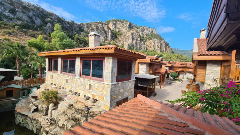 Das BC Spa liegt am „Love Path“ in der Nähe des Calbis River. Umgeben von unberührter Natur, nur 3 Gehminuten vom Zentrum von Dalyan und 35 Minuten vom internationalen Flughafen Dalaman entfernt. Der Strand kann innerhalb von 12 km erreicht werden – der Schildkrötenstrand von Iztuzu ist einzigartig, mit dem Minibus dauert es nur 15 Minuten. Ganz in der Nähe und von historischem Interesse liegt die antike Stätte Kaunos. Nur einen Steinwurf entfernt. Die Felsengräber können bei einem Spaziergang entlang des Flussufers bewundert werden. Die Thermalquellen von Sultaniye erreichen Sie mit der Fähre in weniger als 15 Minuten. Unser Hotel versucht, die Merkmale der anatolischen Zivilisationen widerzuspiegeln. İndividuell gestaltete 70 Zimmern, die mit lokalem Holzhandwerk und Intarsienarbeiten sowie wunderbarer Steinverarbeitung gestaltet sind, laden zum entspannten ein. Der klassische osmanische Stil unserer Gästezimmer spiegelt die einzigartige anatolische Architektur in einer natürlichen Umgebung inmitten des Naturschutzgebiets Dalyan wieder.