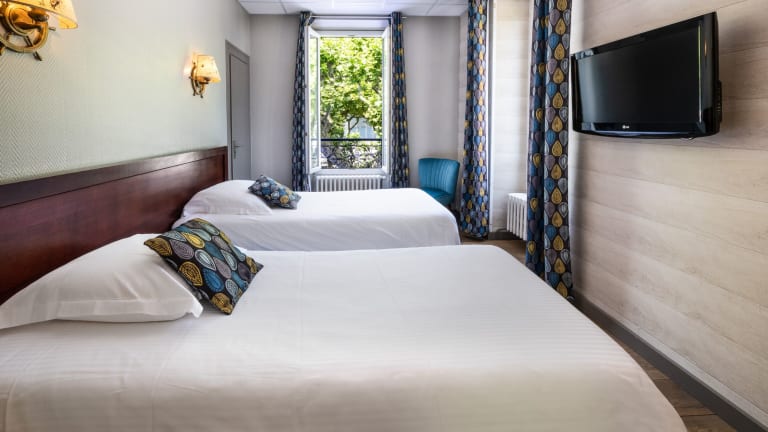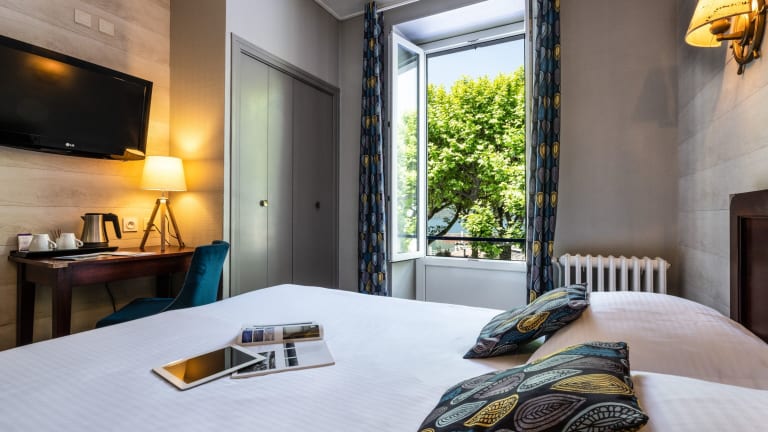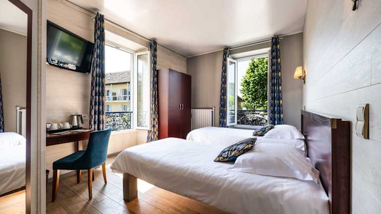 Die Zimmer im Hotel Beau Rivage sind mit einem Schreibtisch, einem Flachbild-TV und einem eigenen Bad ausgestattet. Sie bieten einen angenehmen Rückzugsort für die Gäste.
