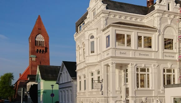 Das Hotel Beckröge liegt direkt in der Grimmershörnbucht in Cuxhaven, City nah und doch in schöner, ruhiger Lage. Die Dohrmannstraße ist eine ruhige Nebenstraße.