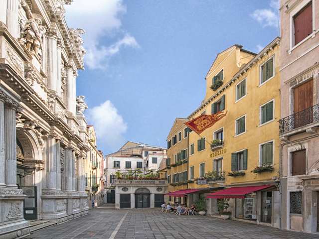 Das Hotel Bel Sito befindet sich im Herzen von Venedig, sehr nahe am Markusplatz. Der Standort an einem typisch venezianischen campo vor der Barockkirche Santa Maria del Giglio ermöglicht einen schnellen Zugang zu bedeutenden Attraktionen wie dem Guggenheim-Museum und der Francois Pinault Foundation im Palazzo Grassi. Der nahegelegene Vaporetto-Anleger erleichtert die Erkundung der Lagunenstadt. In der Umgebung finden sich zahlreiche oft international ausgelegte Restaurants, Bars sowie exklusive Boutiquen, Ateliers und Geschenkeläden. Der Bahnhof Santa Lucia ist etwa 900 Meter entfernt, der Busterminal Piazzale Roma ca. 1 Kilometer.