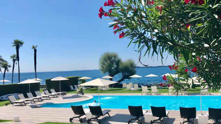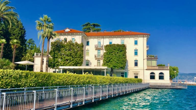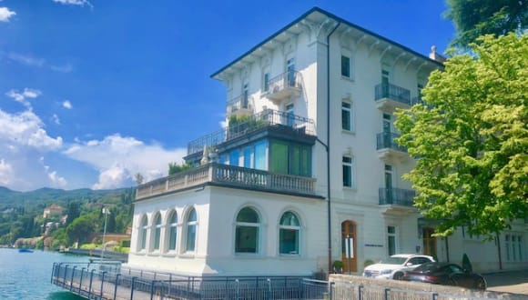 Das Hotel Bella Riva befindet sich direkt am Ufer des Gardasees in Gardone Riviera. Die Umgebung bietet eine idyllische Kulisse mit herrlichem Seeblick.