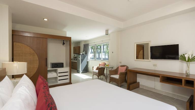In den Zimmern gibt es Klimaanlage, Heizung und in den meisten Zimmern einen Balkon oder eine Terrasse. Zur Ausstattung gehören ein Safe, eine Minibar, ein Schreibtisch und eine Küchenzeile. Ein Flachbild-TV, ein Kühlschrank, eine Mikrowelle sowie eine Tee-/Kaffeemaschine stehen zur Verfügung. Die Badezimmer sind mit Dusche und Badewanne ausgestattet und bieten kostenlose Pflegeprodukte sowie Haartrockner. Zudem sind rollstuhlgerechte Zimmer buchbar.