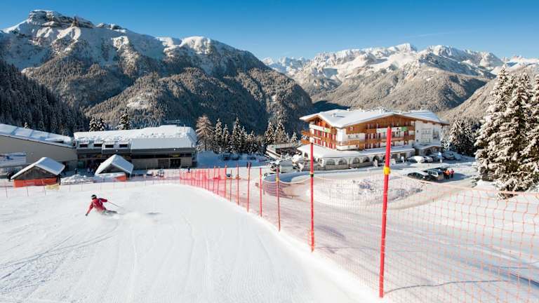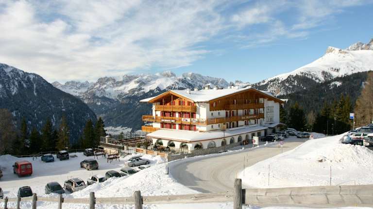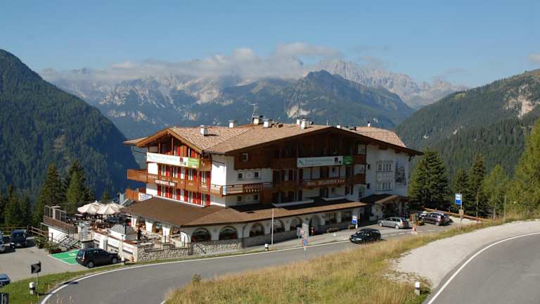 Das Hotel Bellavista befindet sich in einer hochgelegen Lage von 1926 m direkt an den Skipisten der Dolomiten. Der Ort Pordoi bietet eine atemberaubende Berg- und Talblick und ist nur 10 Autominuten vom Zentrum von Canazei entfernt.