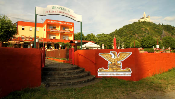 nur 10 km von Koblenz entfernt und direkt am Rheinufer befindet sich das Hotel Bellavista, idealer Ausgangspunkt für Ausflüge auf Rhein und Mosel, bis zu den Schiffe sind es nur 150 meter, der Radweg verläuft am Hotel entlang und der Rheinsteig Wanderweg ist nur ca. 500 meter entfernt.