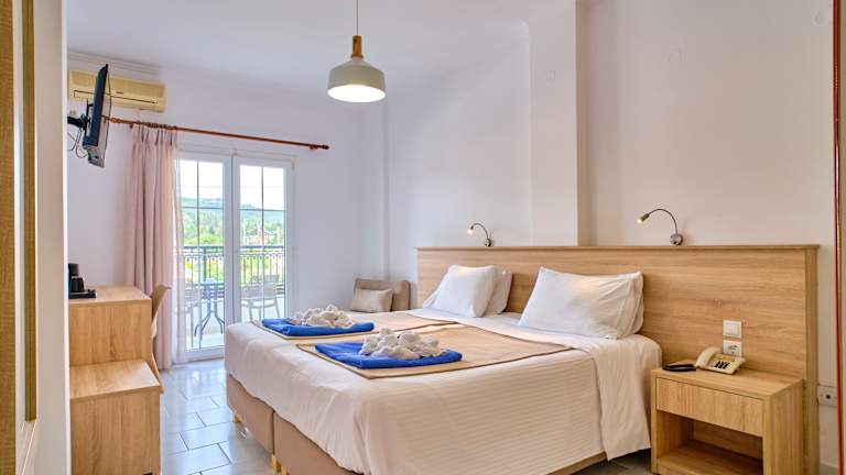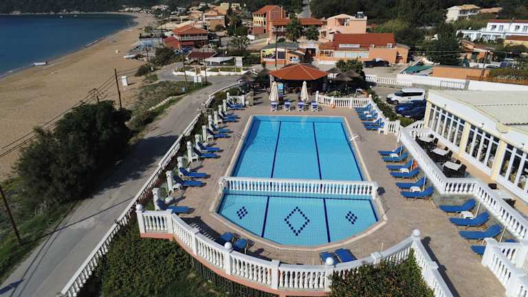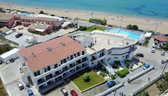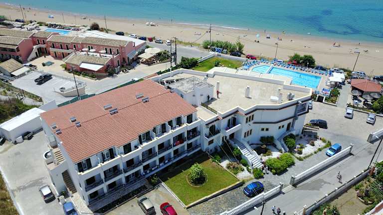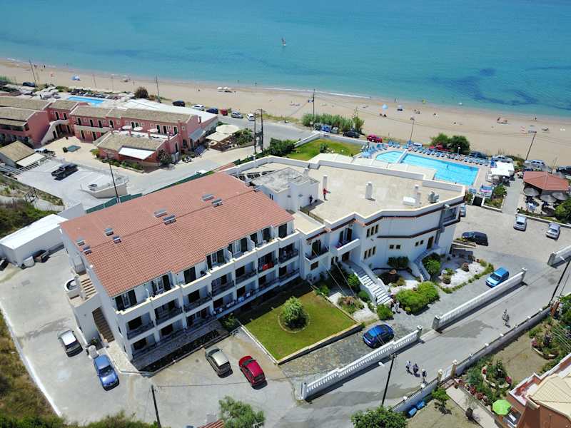 Das Hotel befindet sich in Agios Georgios Pagon, in unmittelbarem Nähe zu einem Sandstrand.