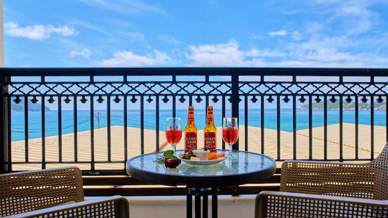 Die Zimmer verfügen über einen Wohnbereich, eine Küche und ein Badezimmer. Eine Klimaanlage sorgt für das richtige Raumklima. Die meisten Zimmer haben einen Balkon oder eine Terrasse mit Meerblick. Familienzimmer sind ebenfalls vorhanden. Jedes Zimmer ist ausgestattet mit einem Safe, einem Kühlschrank in der Kochnische, einem TV-Gerät sowie kostenlosem WiFi. Die Badezimmer sind mit Dusche, Badewanne und Whirlwanne ausgestattet. Ein Haartrockner steht ebenfalls zur Verfügung.