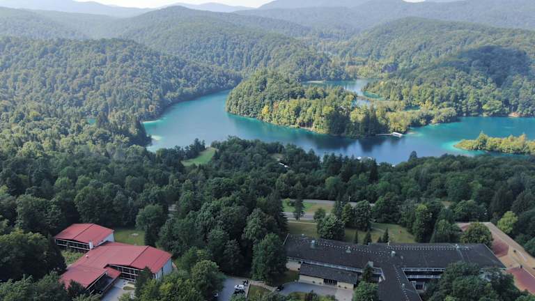 Das Hotel Bellevue befindet sich im Nationalpark Plitvicer Seen. Die Entfernung zum Flughafen beträgt ungefähr 120 Kilometer, zu den Skipisten rund 1,5 Kilometer und der Bahnhof ist nur etwa 200 Meter entfernt.