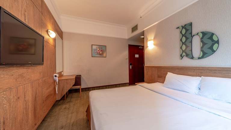 Die klimatisierten Zimmer sind mit einem Doppelbett, einer Minibar, einer Tee- und Kaffeemaschine sowie einem Safe ausgestattet. Zudem sind ein Kühlschrank, ein Schreibtisch und eine Hosenpresse vorhanden. Zur weiteren Ausstattung zählen ein Telefon, ein TV-Gerät sowie kostenfreies Wifi. In den Badezimmern steht ein Haartrockner zur Verfügung. Das Hotel bietet Familien- und Nichtraucherzimmer.