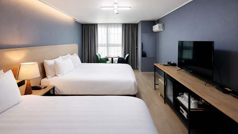 Die Zimmer sind ausgestattet mit Klimaanlage, Heizung, einem Kleiderschrank und einem eigenen Badezimmer, welches mit einer Dusche sowie kostenlosen Pflegeprodukten ausgestattet ist. Zu den weiteren Annehmlichkeiten zählen ein Flachbild-TV, WLAN (ohne Gebühr), ein Safe, eine Minibar, ein Kühlschrank sowie eine Tee-/Kaffeemaschine. Hausschuhe, Bademäntel und Kosmetikartikel stehen ebenfalls zur Verfügung. Familiäre sowie Nichtraucherzimmer sind ebenfalls buchbar.