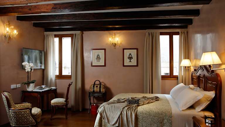 Das Hotel liegt im Herzen von Venedig, in der ruhigen Calle della Pietà, nur wenige Gehminuten vom Markusplatz entfernt. Die nächste Haltestelle des Wasserbusses ist nur 200 Meter entfernt, was eine bequeme Anfahrt und Erkundungsmöglichkeiten in der Stadt ermöglicht.
