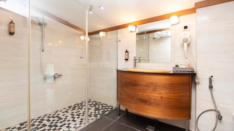 Die klimatisierten Zimmer sind modern eingerichtet und verfügen über ein Queensizebett sowie ein Sofabett. Zur Ausstattung zählen eine Minibar, ein Flachbild-TV, eine Tee-/Kaffeemaschine und ein kostenloses Wifi. Die Badezimmer sind mit einer Dusche oder Badewanne, Bademänteln und Haartrockner ausgestattet. Das Hotel bietet Nichtraucher- und Familienzimmer.