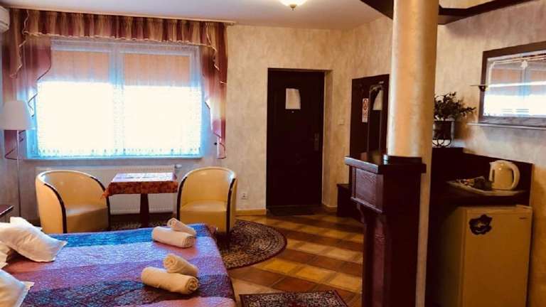 Das Hotel Black Jack "Będzin" hat ein klassisches Design und bietet eine heimelige Atmosphäre. Es verfügt über eine Bar, in der Gäste entspannen können, sowie Konferenzeinrichtungen für geschäftliche Anlässe und einen Kinderspielplatz.