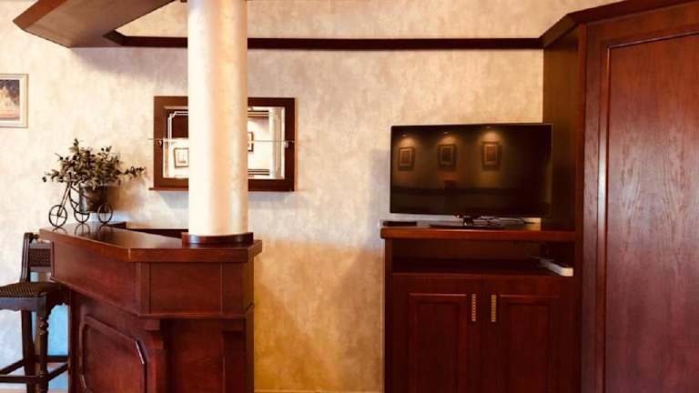 Die geräumigen und klimatisierten Zimmer im klassischen Stil sind mit einem Flachbild-TV, einer Terrasse sowie einem Kühlschrank ausgestattet. Jedes Zimmer verfügt über ein eigenes Bad, das mit einer Dusche und Handtüchern versehen ist.