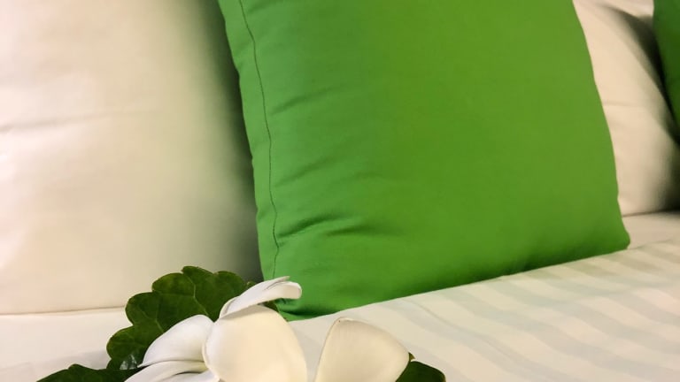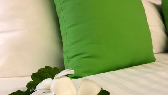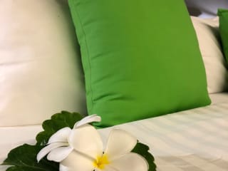 Die Zimmer sind ausgestattet mit Klimaanlage, Satelliten-TV und Minibar. Sie verfügen über eine private Terrasse sowie ein en-suite Badezimmer mit Heisswasser-Dusche. Eine tägliche Reinigung der Zimmer ist im Service enthalten.