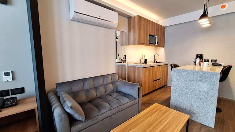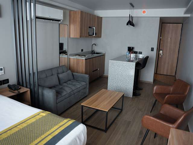 Die klimatisierten Suiten bieten Stadtblick und sind teilweise mit einem Sitzbereich sowie einer Küchenzeile mit Kühlschrank, Herdplatten und Mikrowelle ausgestattet. Die Badezimmer verfügen über kostenlose Pflegeprodukte. WLAN ist in allen Bereichen verfügbar.