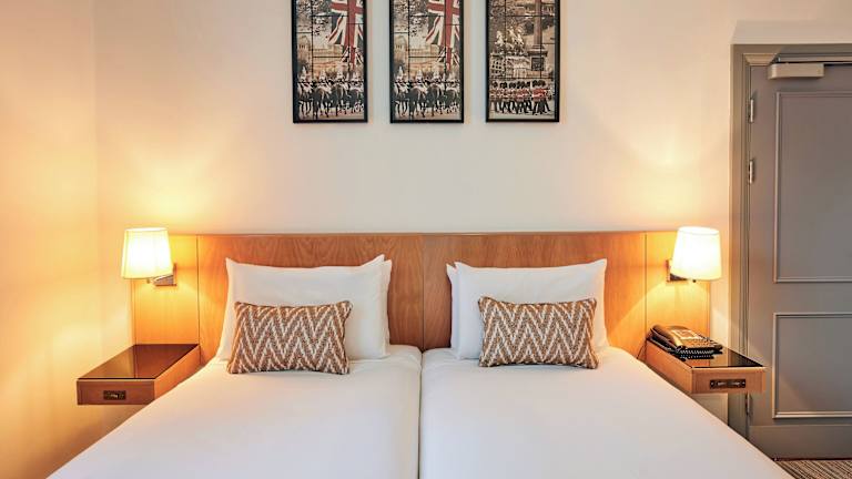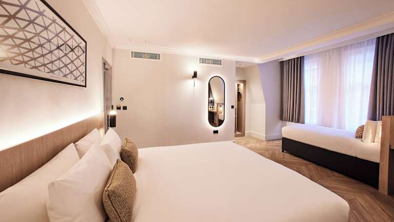 Die Zimmer sind mit Teppichböden ausgestattet und verfügen über ein Doppelbett sowie ein Sofabett. Weitere Annehmlichkeiten sind ein Safe, ein Schreibtisch, ein Kühlschrank, eine Tee-/Kaffeemaschine, ein Telefon mit Direktwahl, ein TV-Gerät mit Satelliten-/Kabelempfang, Radio und Wifi (ohne Gebühr). Die Badezimmer sind mit einer Dusche und einer Badewanne ausgestattet und bieten Kosmetikartikel und Handtücher. Rollstuhlgerechte Zimmer sind buchbar.