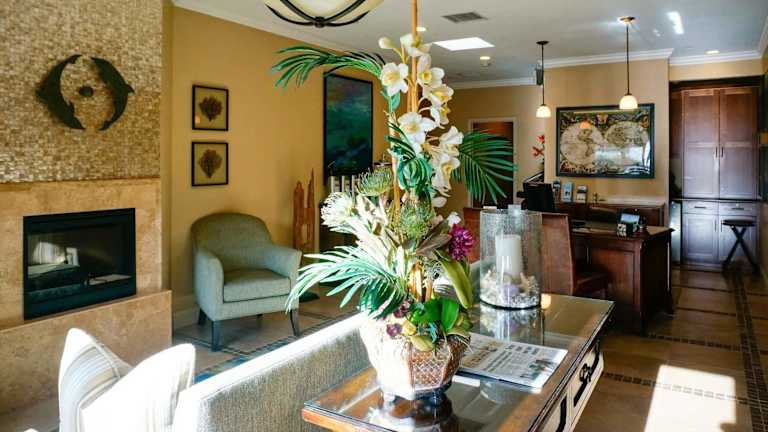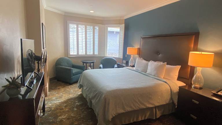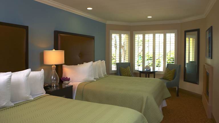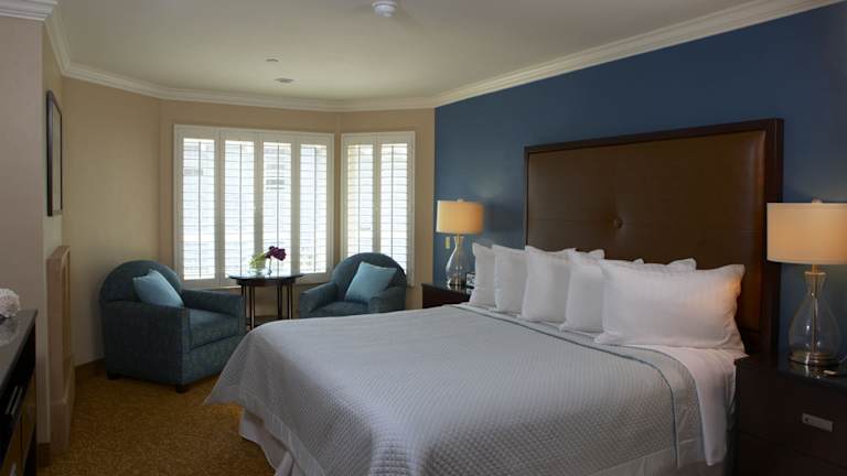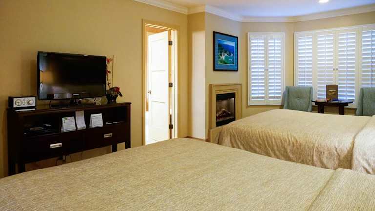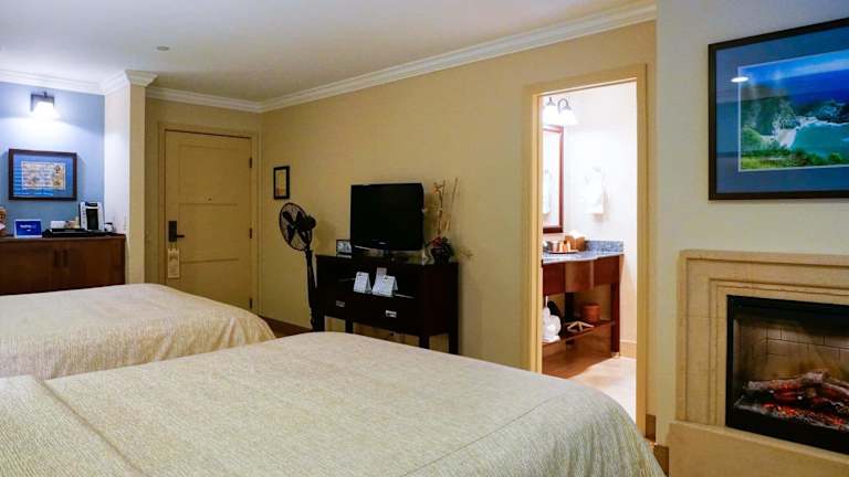Das Hotel Blue Dolphin Inn erwartet seine Gäste in einer heimeligen Atmosphäre. Alle Zimmer sind mit einem Kamin und Bademänteln ausgestattet, um den Gästen ein Gefühl von Bequemlichkeit zu bieten. Die Einrichtung mit blauen, cremefarbenen und strahlend weissen Akzenten sowie edlen Holzmöbeln schafft eine angenehme Umgebung.