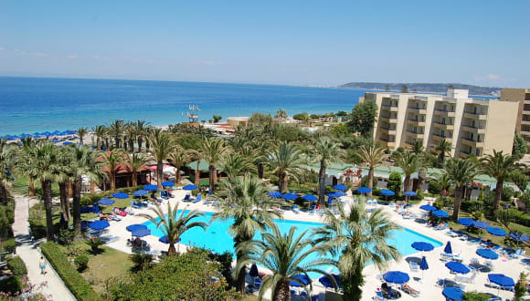 Das Hotel befindet sich in Ialyssos, direkt am Sand- und Kiesstrand. Der öffentliche Strandbereich ist nur wenige Schritte entfernt und bietet Liegestühle sowie Sonnenschirme gegen Gebühr. Ialyssos liegt etwa 8 km vom Stadtzentrum von Rhodos entfernt und ca. 7 km vom Flughafen Diagoras International Airport. Die nächste Bushaltestelle ist nur 50 m entfernt, wodurch die Erreichbarkeit von umliegenden Orten erleichtert wird.