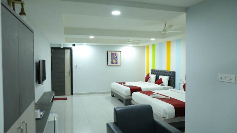 Das HOTEL BLUE MOON bietet eine gemütliche und einladende Atmosphäre mit verschiedenen Annehmlichkeiten für die Gäste. Zu den Dienstleistungen gehören ein 24-Stunden-Zimmerservice, eine Rezeption sowie ein Währungsumtausch. Es wird kostenloses WLAN in der gesamten Unterkunft angeboten. Die Bedienung ist freundlich und viele Sprachen, einschliesslich Englisch, Hindi und Telugu, werden gesprochen.
