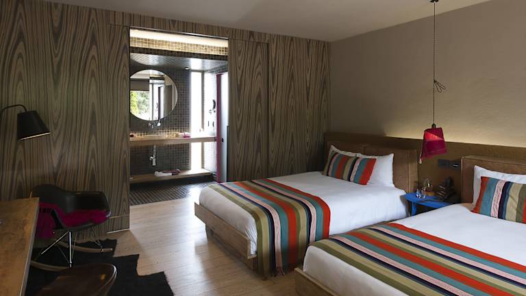 Die Zimmer sind modern ausgestattet und verfügen über eine Klimaanlage, Heizung, einen Balkon oder eine Terrasse mit Gartenblick. Zur Einrichtung gehören ein Doppel- oder Kingsize-Bett, ein Safe, ein Schreibtisch, eine Tee-/Kaffeemaschine, ein Flachbildschirmfernseher sowie ein DVD-Player. Die Badezimmer sind mit einer Dusche und Badewanne ausgestattet und bieten Pflegeprodukte von Molton Brown. Es stehen auch rollstuhlgerechte Zimmer zur Verfügung.