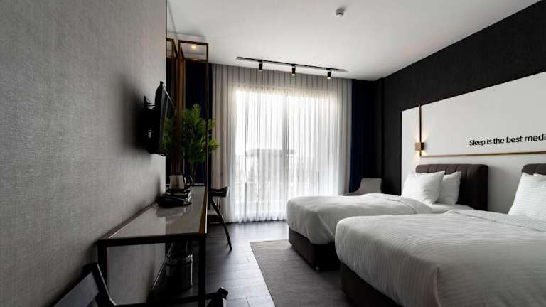 Die Zimmer sind klimatisiert und mit einem Schreibtisch, einer Terrasse mit Stadtblick, einem eigenen Badezimmer, einem Flachbild-TV sowie Bettwäsche und Handtüchern ausgestattet. Einige Zimmer bieten zusätzlich einen Blick auf den Pool und sind alle mit einem Balkon versehen. Jedes Gästezimmer verfügt über einen Kleiderschrank sowie einen Wasserkocher.