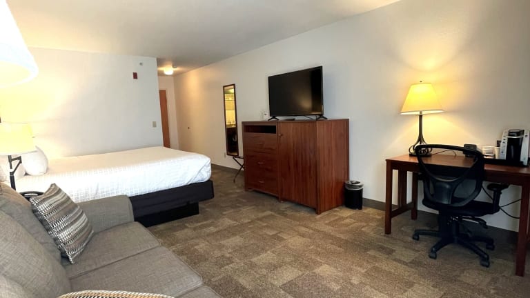 Das Hotel Boothill Inn & Suites bietet eine herzliche und einladende Atmosphäre, in der die Gäste ihre Ferien in vollen Zügen geniessen können. Das Hotel ist ausgestattet mit einem Innenpool, der zwei Whirlpools umfasst, sowie einem Fitnesscenter. Für Bequemlichkeit sorgt die 24-Stunden-Rezeption und ein kostenloser Flughafenshuttle. Täglich stehen Guetzli, die frisch gebacken werden, bereit.