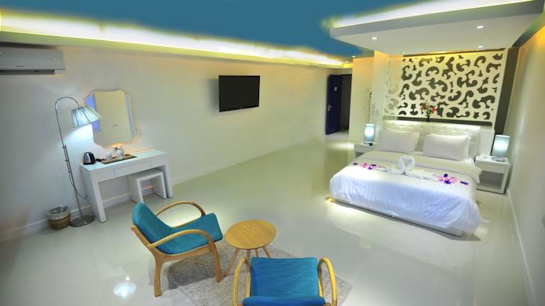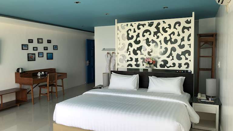 In den Zimmern finden die Gäste eine Küche und ein Badezimmer vor, zudem sorgen Klimaanlage und moderne Annehmlichkeiten wie ein TV mit Satellitenempfang, eine Minibar sowie ein Safe für zusätzlichen Komfort. Balkon oder private Terrasse bieten die Möglichkeit, den Blick auf das Meer zu geniessen. Zustellbetten sind auf Anfrage verfügbar.