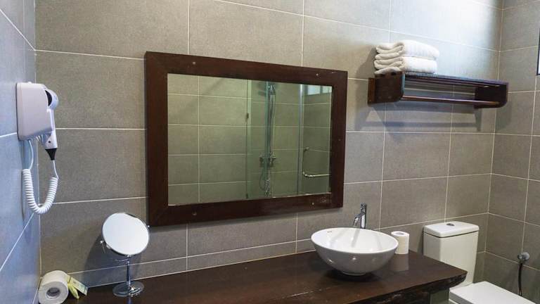 Die halb freistehenden Strandchalet-Zimmer sind klimatisiert und verfügen über ein Bad mit Dusche. Alle Zimmer bieten Standard-Annehmlichkeiten für einen angenehmen Aufenthalt.